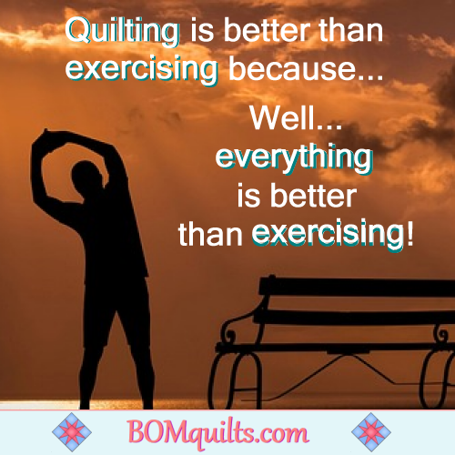 BOMquilts.com’s Meme: Exercising? I get my exercise in by lifting the pedal to the metal on my presser foot!