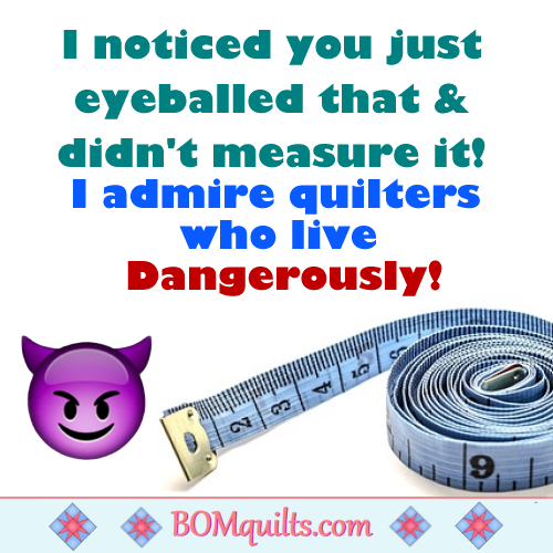 11-19-BOMquilts-meme-I-admire-Quilters-who-live-Dangerously Published November 20, 2022 at 500 × 500 in BOMquilts Memes BOMquilts.com’s Meme: I can measure something without a tape measure or ruler! I love living on the edge!
