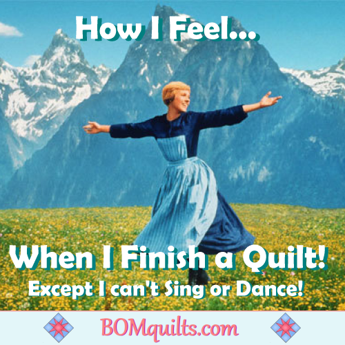 BOMquilts.com’s Meme: Thank goodness that I’m nowhere near the Swiss Alps! Otherwise I might end up with broken bones, a sprained ankle or two & probably a concussion upon the completion of a single quilt!