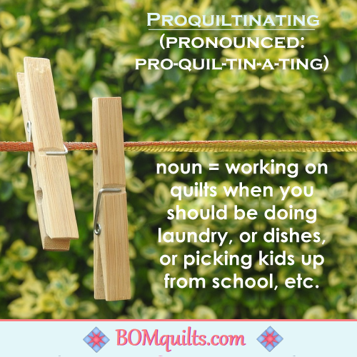 BOMquilts meme: I can make up words if it fits with what I am doing! Proquiltinating is my word of choice these days! If you don’t know what it means, then you have not been quilting long enough!