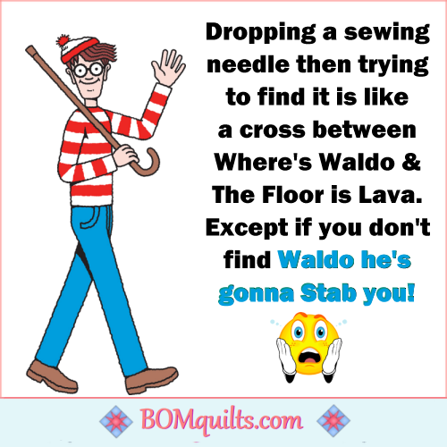 I am paranoid about Waldo! He is out to get me every time I drop a needle! Forget about the Floor being Lava! It is Waldo that haunts my dreams! Published May 2, 2024 at 500 × 500 in BOMquilts Memes I am paranoid about Waldo! He is out to get me every time I drop a needle! Forget about the Floor being Lava! It is Waldo that haunts my dreams!