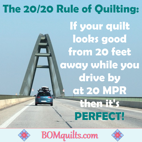 BOMquilts.com’s Meme: I love the 20/20 Rule of Quilting! Mostly because I want all of my quilts to look perfect (even if they aren’t)! Published May 25, 2023 at 500 × 500 in BOMquilts Memes BOMquilts.com’s Meme: I love the 20/20 Rule of Quilting! Mostly because I want all of my quilts to look perfect (even if they aren’t)!