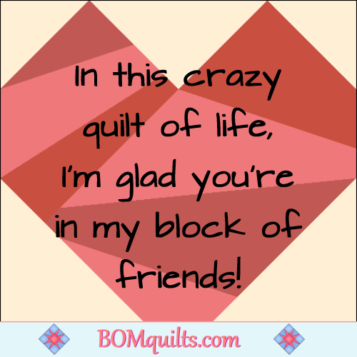 BOMquilts.com’s Meme: I love the quilt blocks that remind me of how many friends I have who are on the same block as I am! Does that make all of us crazy for each other?!