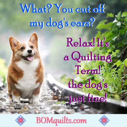 BOMquilts.com’s Meme: Clip your dog ears or clip your corners. Doesn’t matter what you call them! But don’t worry about your pooch! It’s ears are just the same as they were yesterday!