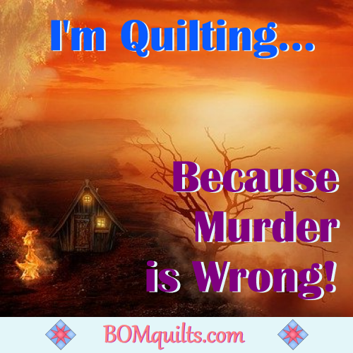 BOMquilts.com’s Meme: There’s a Commandment against murder & I always try to follow the 10 Commandments! Which is why I Quilt! Published June 6, 2022 at 500 × 500 in BOMquilts Memes BOMquilts.com’s Meme: There’s a Commandment against murder & I always try to follow the 10 Commandments! Which is why I Quilt!