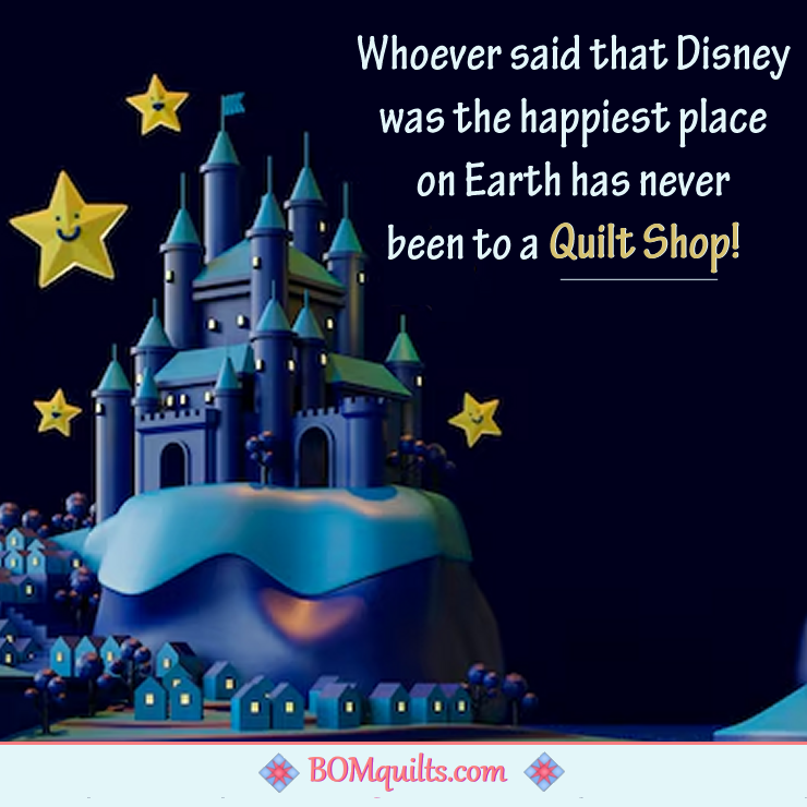 BOMquilts meme: I have been to Disneyland when I was a teenager! But it doesn’t hold a candle to a quilt shop! It is better than anything that Disney has to offer! It is my happy place!