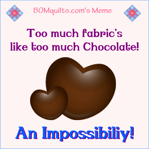 BOMquilts.com’s meme: Too much chocolate vs. too much fabric? Did I hear you correctly? You’ve got to be kidding me! Does anyone else feel the same? Published July 6, 2021 at 500 × 500 in BOMquilts Memes BOMquilts.com’s meme: Too much chocolate vs. too much fabric? Did I hear you correctly? You’ve got to be kidding me! Does anyone else feel the same?