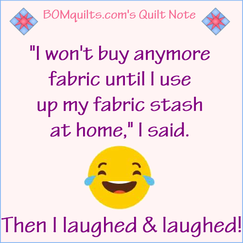 BOMquilts.com’s Meme: I won’t buy anymore fabric until I use up my fabric stash at home! Published January 2, 2021 at 500 × 500 in BOMquilts Memes BOMquilts.com’s Meme: I won’t buy anymore fabric until I use up my fabric stash at home!