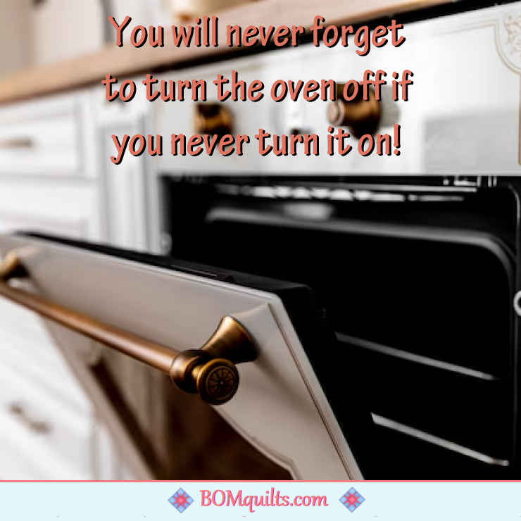 BOMquilts meme: When I said that I would rather quilt than cook I meant it! Just because there is an oven in my kitchen, it doesn’t mean that I use it! I am not even sure how to turn the silly thing on?!