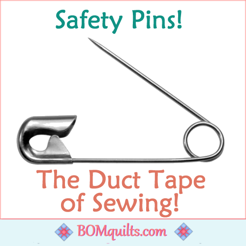 BOMquilts meme: Remember when we used to use duct tape to fix everything? Quilters now use safety pins to fix everything!