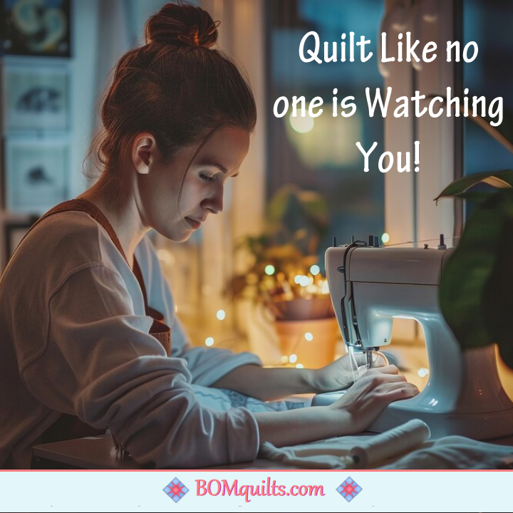 BOMquilts meme: Whether you quilt with your guild, or you quilt by yourself, always quilt like no one is looking over your shoulder! You will get more done & you do not have to worry about your seam allowances!