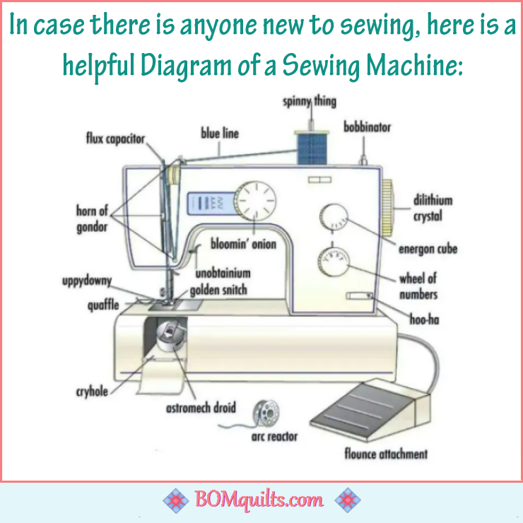 BOMquilts Meme: If you are new to sewing then you are going to need this Sewing Machine Diagram!