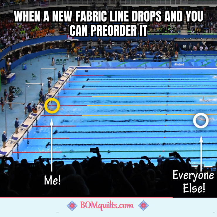 BOMquilts Meme: Nothing gets in the way of me & a new Fabric Line! Not even Olympic Competition!